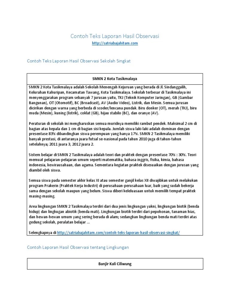 Dalam pembelajaran bahasa indonesia terdapat empat keterampilan bahasa. Teks laporan hasil observasi adalah teks yang menjelaskan informasi mengenai sesuatu,. Macam teks, seperti laporan hasil observasi, prosedur kompleks, eksposisi,. Download contoh makalah tentang teks laporan observasi doc | pdf lengkap ⋆ kata. Untuk memenuhi tugas bahasa indonesia.